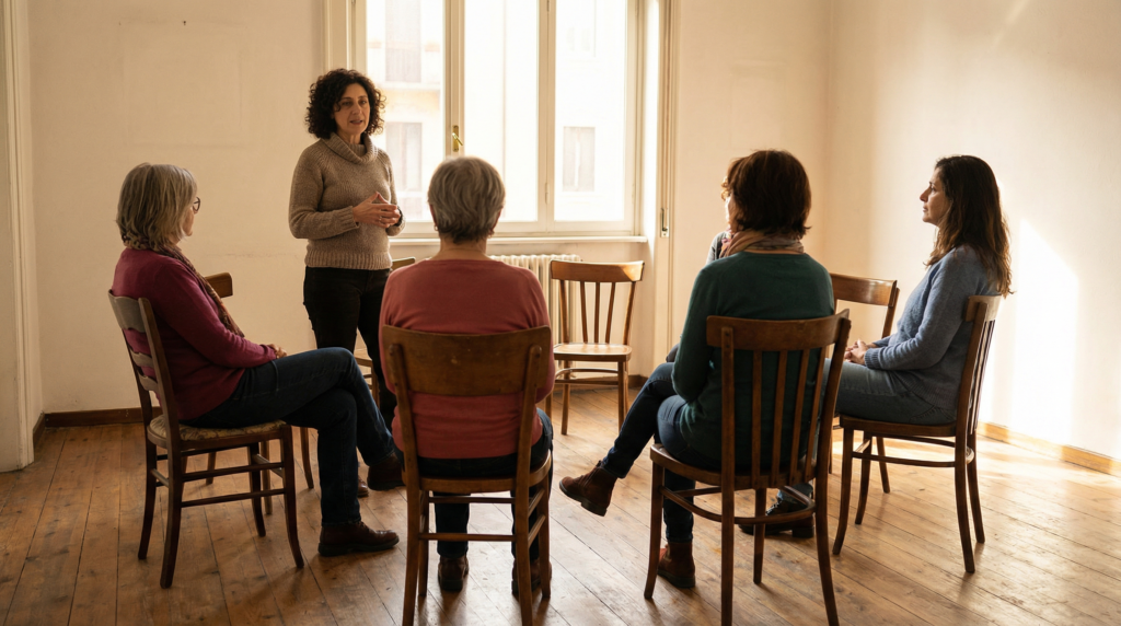 Ogni mese sei in aula con Mariella. Costellazioni, tutoraggio continuo, supervisione. Esci dall'accademia già formato, non in teoria.